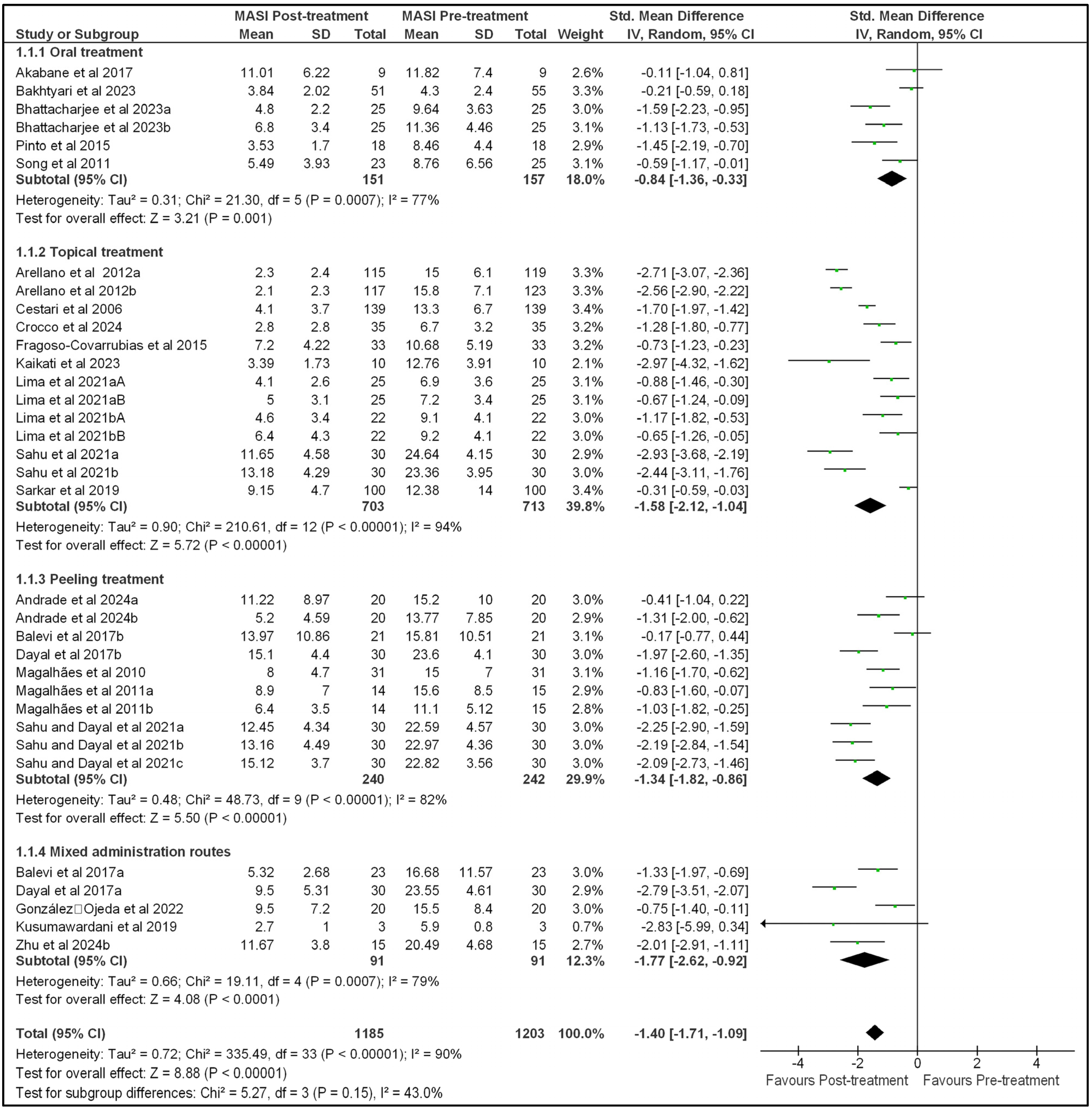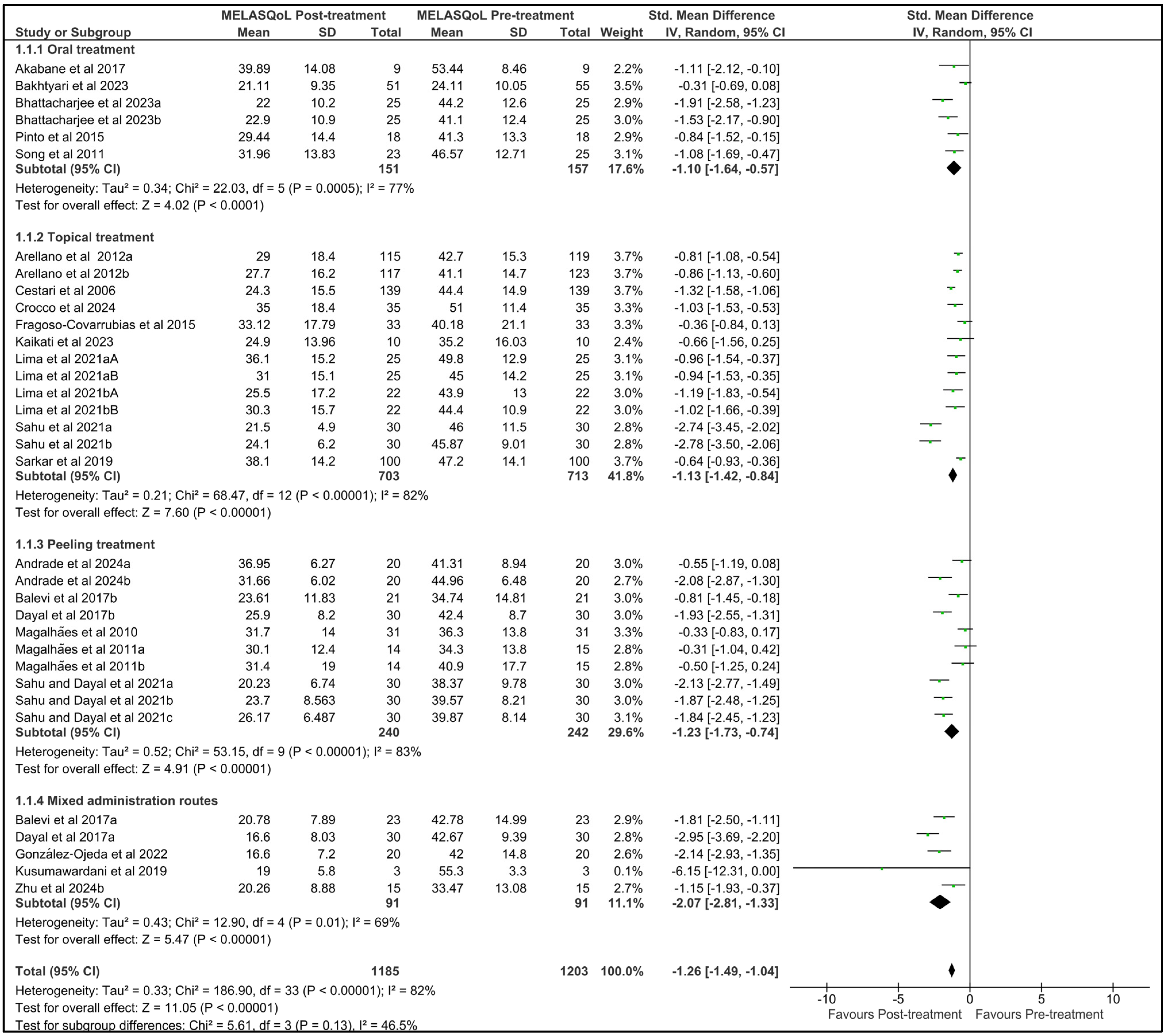 Systematic Review and Meta-Analysis of Treatments on Melasma Area Severity Index and Quality of Life