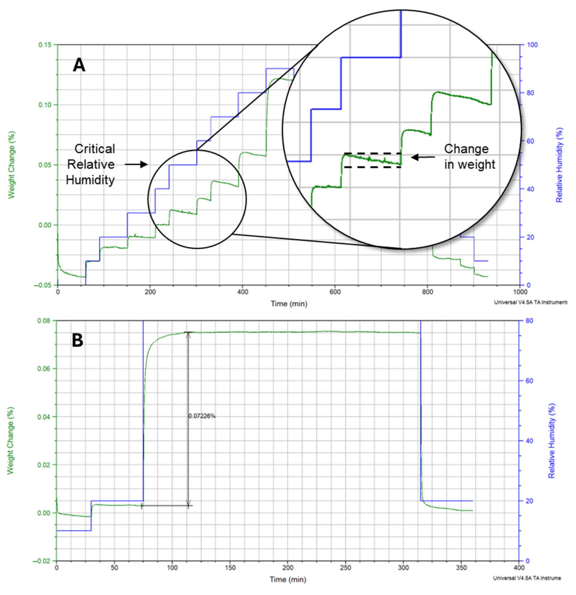 16]. Nevertheless, it is common for DPI applications to work under much lower RH because of API and formulation sensitivity to water (i.e., spray-dried formulations). In this case, capsule flexibility may impact the emitted dose due to an increased risk of capsule brittleness. In particular, storage below 40% RH increases gelatin capsule brittleness, potentially compromising puncture performance and dose reproducibility. This capsule moisture sensitivity directly impacts critical quality attributes including aerodynamic particle size distribution; hygroscopic excipients exposed to elevated humidity form stronger agglomerates through increased capillary forces, resulting in reduced fine particle fraction and altered lung deposition profiles.
