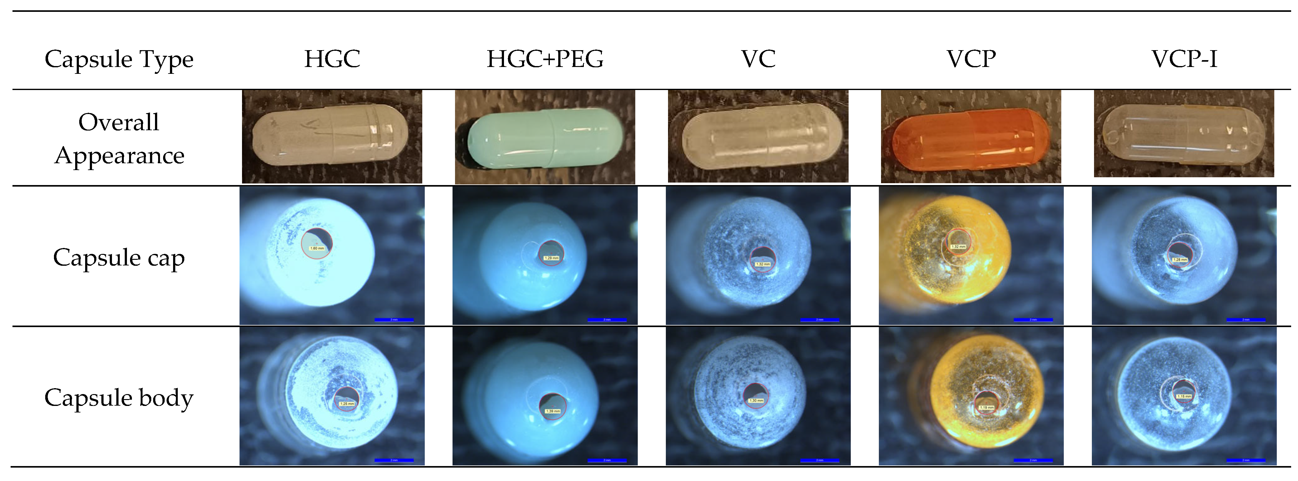 The superior performance of HPMC capsules, particularly VCP-I, stems from fundamental differences in polymer chemistry, surface characteristics, and manufacturing processes that influence powder–capsule interactions through multiple mechanisms