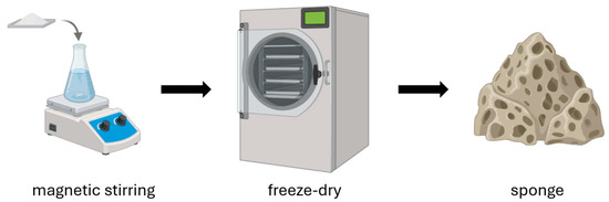 Finished chitosan sponges are characterized by high porosity, excellent absorbency, flexibility, and biocompatibility [53]. Due to their high liquid absorption capacity, chitosan sponges are also proposed as effective absorbents. The production of water-insoluble sponges can be achieved by washing them in an alkaline solution, followed by rinsing with water and drying [58].