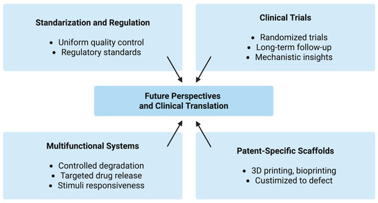 Another critical step toward clinical translation involves conducting well-designed randomized clinical trials. Most available data originate from small-scale or animal studies, which do not fully represent the complexity of human oral tissues. Clinical trials assessing chitosan sponge dressings in post-extraction sockets, periodontal defects, and alveolar bone regeneration should include long-term follow-up to evaluate biodegradation, inflammatory response, and tissue integration. Moreover, the incorporation of biomarkers of healing and bone remodeling may provide deeper mechanistic insights into their clinical performance.