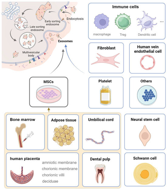 Cellular sources of exosomes that are widely researched in regenerative medicine (created with BioRender.com).
