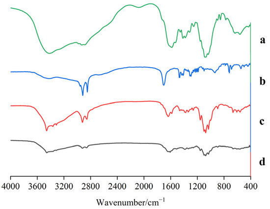 Figure 1. Infrared spectrum of CS (a), SA (b), CS-SA (c), and FCS (d).