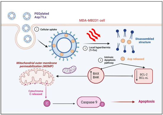 The molecular mechanism underlying the effectiveness of optimal Asp/TLs in triple-negative breast cancer focuses on their ability to induce apoptosis in the invasive MDA-MB-231 cell line. Reproduced with copyright permission from the Royal Society of Chemistry (RSC) [39].