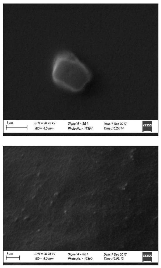 Morphology was observed by scanning electron microscope (SEM), Leo Evo 40 XVP (Carl Zeiss), Oberkochen, Germany. Samples were prepared using nanoparticle suspensions, placed on an aluminum stub covered with a carbon adhesive disk, and coated with gold.