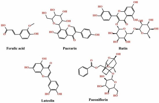 The purposes of this study were to develop a novel, safe, and effective transdermal penetration enhancer derived from the leaves of Perilla frutescens (L.) Britt, verify its penetration enhancement effects, and investigate the underlying mechanisms from a comprehensive, multifaceted perspective. The essential oil extracted from P. frutescens leaves was analyzed using gas chromatography–mass spectrometry (GC-MS), and the molecular structures of its main components were verified using proton nuclear magnetic resonance (1H NMR). Penetration-enhancing effects were assessed through an in vitro skin permeation test; the correlations between the drug’s skin permeation-related parameters and the drug’s physicochemical properties were acknowledged. Five model drugs with varying physicochemical parameters, including peoniflorin, luteolin, rutin, ferulic acid, and puerarin, were selected to evaluate their penetration enhancement effects. These drugs were chosen based on their PSAs, hydrogen bond (H-bond) acceptors, and H-bond donors. Their chemical structures are shown in Figure 1, and their physicochemical properties are detailed in Table 1. To ensure the safety and application potential of PO in TDDSs, in vivo skin irritation tests were conducted. The penetration enhancement mechanism was systematically evaluated using attenuated total reflectance–Fourier transform infrared spectroscopy (ATR-FTIR), differential scanning calorimetry (DSC), a confocal laser scanning microscope (CLSM), a scanning electron microscope (SEM), molecular docking (MD), molecular dynamics simulation (MS), and transepidermal water loss (TEWL) tests. The preparation and evaluation processes for PO are depicted in Figure 2.