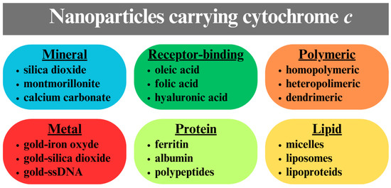 Different types of cytC carrying nanoparticles with a mineral, metal, polymeric, protein, or lipid hybrid core.