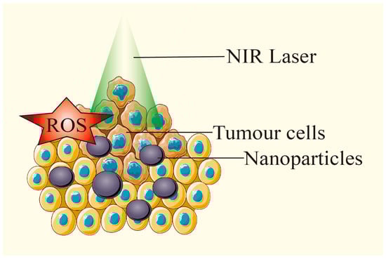 Under laser irradiation, PTAs generate ROS while heating up, and exert PTT and PDT effects at the same time. Adapted from [13], Multidisciplinary Digital Publishing Institute, 2018.