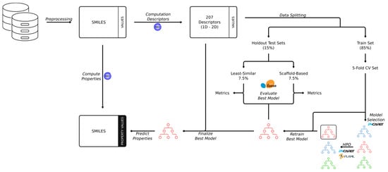 - Tetko, I.V.; Gasteiger, J.; Todeschini, R.; Mauri, A.; Livingstone, D.; Ertl, P.; Palyulin, V.A.; Radchenko, E.V.; Zefirov, N.S.; Makarenko, A.S.; et al. Virtual Computational Chemistry Laboratory—Design and Description. J. Comput.-Aided Mol. Des. 2005, 19, 453–463. [Google Scholar] [CrossRef] [PubMed]