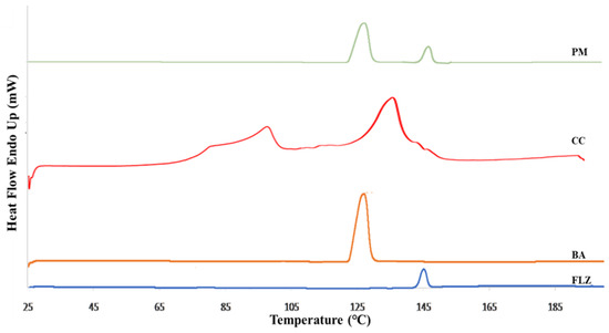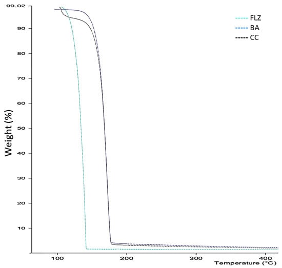 - Teleginski, L.K.; Maciel, A.B.; Mendes, C.; Silva, M.A.S.; Bernardi, L.S.; de Oliveira, P.R. Fluconazole–excipient compatibility studies as the first step in the development of a formulation candidate for biowaiver. J. Therm. Anal. Calorim. 2015, 120, 771–781. [Google Scholar] [CrossRef]