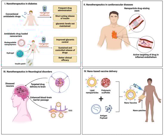 - Caturano, A.; Nilo, R.; Nilo, D.; Russo, V.; Santonastaso, E.; Galiero, R.; Rinaldi, L.; Monda, M.; Sardu, C.; Marfella, R. Advances in nanomedicine for precision insulin delivery. Pharmaceuticals 2024, 17, 945. [Google Scholar] [CrossRef]