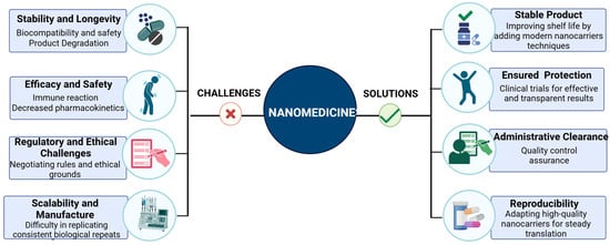 Despite their excellent potential, the usage of advanced material-based drug delivery systems is limited by several translational issues. The biocompatibility and long-term safety of these materials remains a critical concern. For example, some nanomaterials may induce an immune response or accumulate in the body and cause toxicity [30,31]. Furthermore, the large-scale production of these sophisticated systems poses challenges in batch-to-batch consistency, quality control, and cost efficiency. The need for specialized infrastructure further restricts their scalability. Additionally, regulatory frameworks for nanoparticle-based therapeutics remain underdeveloped, as most of these materials represent entirely new classes of therapeutic systems with limited precedent in clinical applications. Collaborative efforts between researchers, industry stakeholders, and regulatory bodies are essential to establish clear approval pathways and standardized guidelines for their clinical translation.