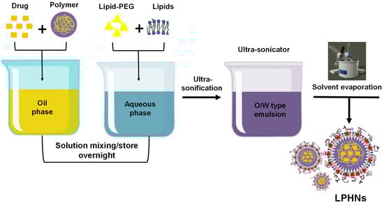 Preparation of LPHNs using the single-step emulsification solvent evaporation technique.