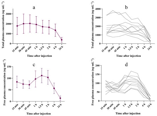 | AUC(0–t) | μg·L−1·h | 7960.2 | 24,639.6 | 36,138.1 | 32,950.3 | 16,734.9 | 37,106.9 | 11,903.6 | 21,654.8 | 29,790.6 | 18,525.9 | 23,740.5 (10,134.3) |