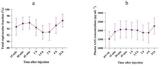 - Yokogawa, K.; Shimomura, S.; Ishizaki, J.; Shimada, T.; Fukuwal, C.; Kawada, M.; Tsubokawa, T.; Yamamoto, K.; Miyamoto, K.-I. Involvement of alpha1-acid glycoprotein in inter-individual variation of disposition kinetics of ropivacaine following epidural infusion in off-pump coronary artery bypass grafting. J. Pharm. Pharmacol. 2007, 59, 67–73. [Google Scholar] [CrossRef] [PubMed]
