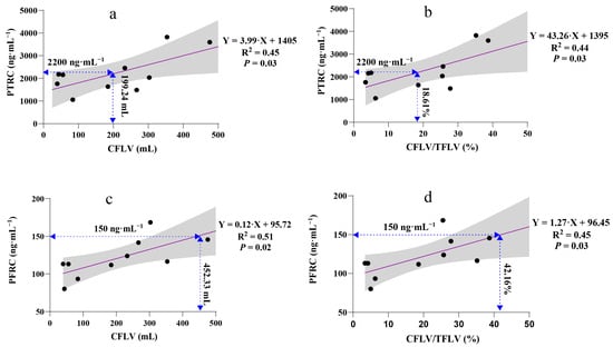 | TLV (mL) | DLV (mL) | TFLV (mL) | RLV (mL) | CFLV (mL) | CFLV/TFLV (%) | PTRC (ng·mL−1) | PFRC (ng·mL−1) | |