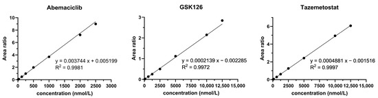 Representative calibration curves of abemaciclib, GSK126 and tazemetostat.
