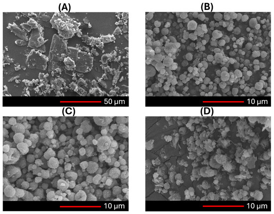 The selection of excipients during spray drying significantly influences the physicochemical properties of the final powder. Common excipients, such as mannitol, trehalose, and leucine, play a critical role in stabilizing formulations during drying and ensuring product stability. Mannitol is commonly used as a cryoprotectant, preserving structural integrity and enhancing formulation stability [19]. However, its tendency to crystallize can impact the aerosol performance and fine particle fraction (FPF) upon storage [20]. In contrast, leucine improves powder dispersibility and stability in dry powder formulations by reducing particle cohesion and enhancing aerosolization [21]. Since excipients in spray drying serve multiple roles, including thermal protection, aggregation prevention, and maintaining API bioactivity, the ideal spray-dried preparations may necessitate a combination of various excipients [22]. Moreover, their influence on spray-dried powder should be carefully evaluated to ensure optimal characteristics and to achieve the desired powder properties.