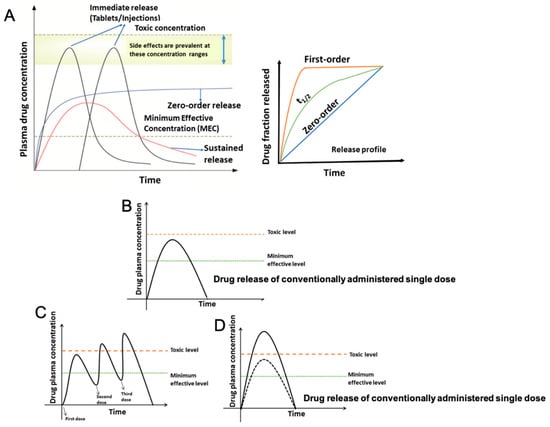 Amongst the various developments within this remit, ranging from materials to externally triggered devices, the size of (or a key component of some drug delivery systems) has led to monumental exploratory achievements, certainly on the ‘nano’ scale. Nanotechnology holds immense potential to transform the landscape of cancer detection and treatment, or perhaps even in sync, in the foreseeable future. Nanoparticles (NPs) have been shown to effectively penetrate biological barriers, target tumors, and selectively identify individual cancer cells for diagnosis and treatment [3,4]. As a result, nanomedicines not only enhance the therapeutic efficacy of drugs but also mitigate their adverse effects on healthy tissues. While significant progress has been made in the field of cancer nanomedicine, there is a growing interest in applying nanotechnology to other medical conditions, such as cardiovascular diseases, by enabling targeted delivery of anti-inflammatory agents, stabilizing vulnerable plaques, and promoting vascular repair. These advancements highlight the potential of nanotechnology in addressing complex pathologies beyond oncology [5]. As such, pharmaceutical companies are focusing on novel drug delivery systems to overcome bottlenecks and limitations of conventional drug delivery methods. The demand for high-performance, flexible, and controlled-release systems is being driven by advancements in patient compliance, clinical efficacy, prolonged product life, and economic benefits. Consequently, novel drug delivery systems are expected to be one of the fastest-growing segments within the healthcare sector [6].
