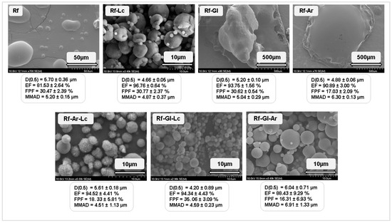 - Bosquillon, C.; Lombry, C.; Préat, V.; Vanbever, R. Influence of Formulation Excipients and Physical Characteristics of Inhalation Dry Powders on Their Aerosolization Performance. J. Control. Release 2001, 70, 329–339. [Google Scholar] [CrossRef]