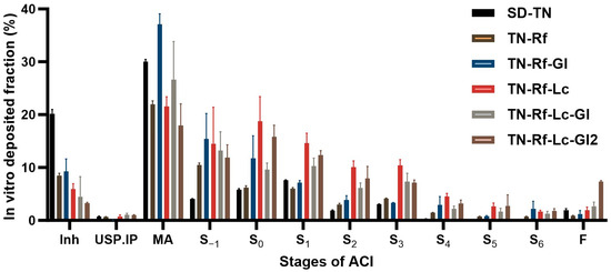 3.9.1. In Vitro Aerodynamic Characterization, Andersen Cascade Impactor (ACI)