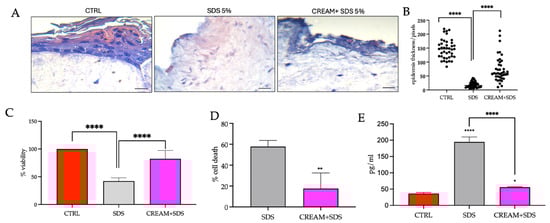 The detergent SDS is a well-known inducer of irritant contact dermatitis. As such, the OECD TGs [22] stipulate that a concurrent negative CTRL and positive CTRL of 5% aqueous SDS be used in comparative assessments with the novel substances under investigation (cream + 5% SDS).