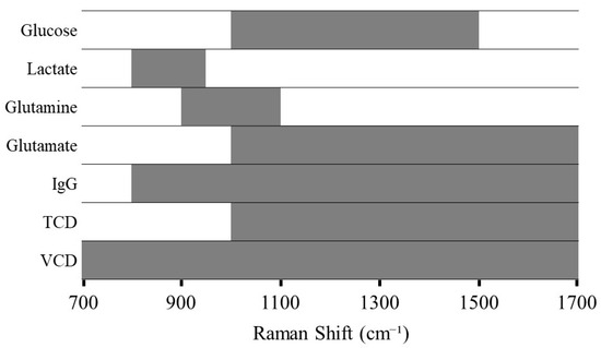 Finally, the complexity of the cell culture medium, along with overlapping Raman bands from various analytes with similar chemical functional groups, complicates the isolation of distinct signals corresponding to nutrients and metabolites of interest [5,29]. For these reasons, chemometric analysis is essential to reveal hidden information in Raman spectra.
