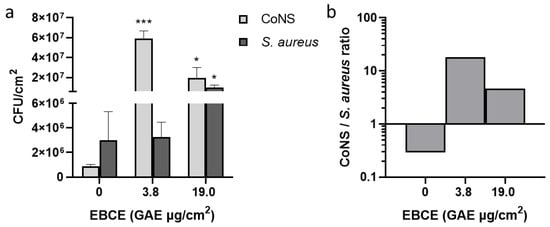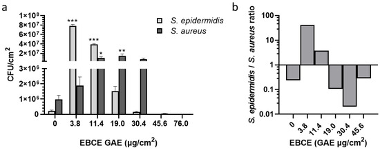 3.3. Effect of Enzymatic Blackcurrant Extract on the Growth of S. aureus SA-DUS-017 and S. epidermidis DSM 20044 Co-Cultured on the Stratum Corneum Model