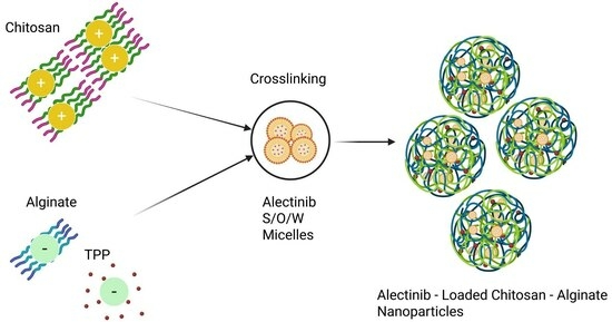 Alectinib-Loaded Chitosan–Alginate Nanoparticles: A Novel Synthesis Method with In Vitro and In Vivo Evaluations