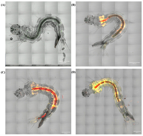 3.2. Confocal Laser Scanning Fluorescence Microscopy of Aedes aegypti Larvae