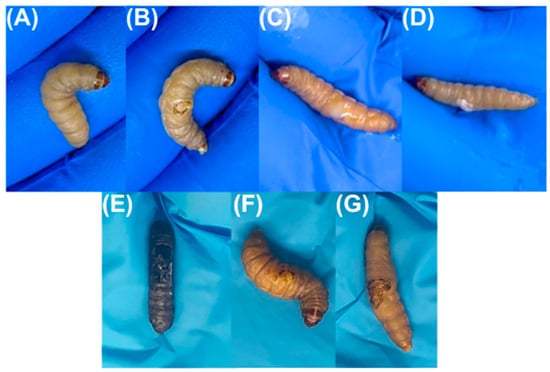 - Pereira, M.F.; Rossi, C.C.; da Silva, G.C.; Rosa, J.N.; Bazzolli, D.M.S. Galleria mellonella as an Infection Model: An In-Depth Look at Why It Works and Practical Considerations for Successful Application. Pathog. Dis. 2020, 78, ftaa056. [Google Scholar] [CrossRef]