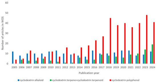 - Two decades ago (years 2005–2014), the number of articles on the topics of CDs and secondary metabolites was quite stable, with a predominance of studies on CD-PPs over CD-Alks, with the least interest in CD-TTs;