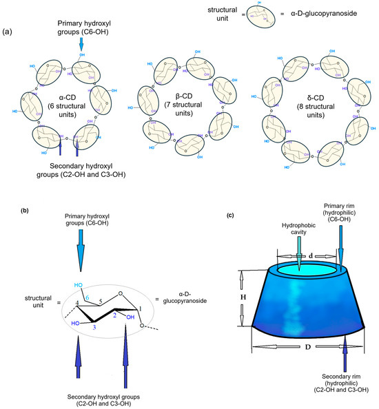 - Poulson, B.G.; Alsulami, Q.A.; Sharfalddin, A.; El Agammy, E.F.; Mouffouk, F.; Emwas, A.-H.; Jaremko, L.; Jaremko, M. Cyclodextrins: Structural, Chemical, and Physical Properties, and Applications. Polysaccharides 2022, 3, 1–31. [Google Scholar] [CrossRef]