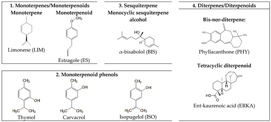 - Terpenes and their oxygenated derivatives, terpenoids (TTs); other isoprene-derived compounds, such as steroids, carotenoids, and gibberellic acid, are also included in this classification [96];