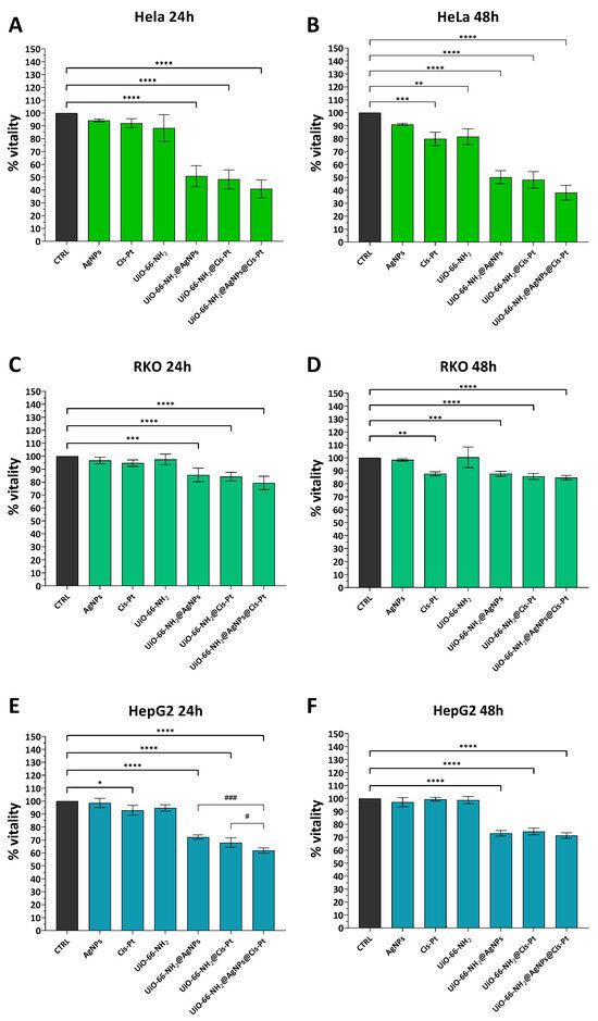 3.2.3. Effect of UiO-66-NH2@AgNPs on Various Tumour Cell Lines