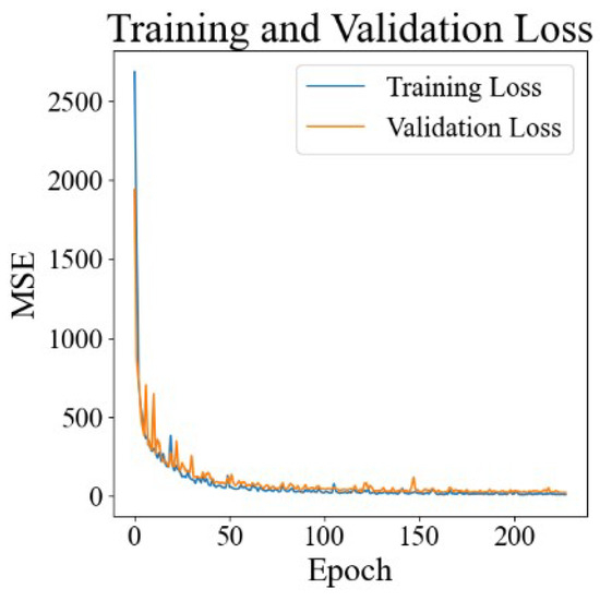 We used 6-dimensional PLGA carrier feature data and 14-dimensional drug molecule feature data obtained in studies from the literature and a time point as the model inputs, divided the dataset according to the time point (see Section 2.4), trained and verified the model, and obtained a loss function diagram, as shown in Figure 2. It is obvious that the training loss and validation loss converge rapidly from about 2000 to about 20, and there is no significant gap between them, indicating that the model can quickly learn effective features and rules from the training data. The rapid decline in and stabilization of the validation losses indicate that the model not only performs well on training data but also maintains a good performance on previously unseen validation data.