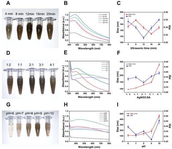 3.2. Study of the Effect of Different Factors on the Biosynthesis of SA-AgNPs