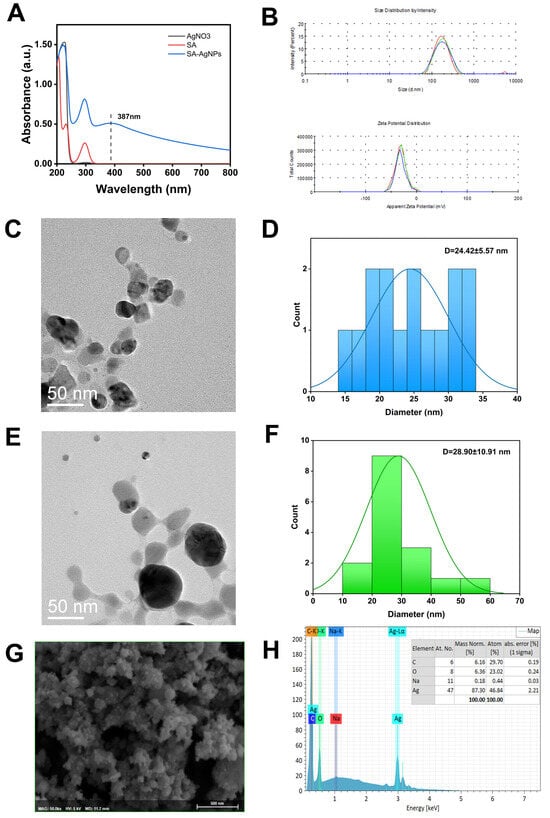 3.1. Green Synthesis of Salicylic Acid-Silver Nanoparticles (SA-AgNPs)
