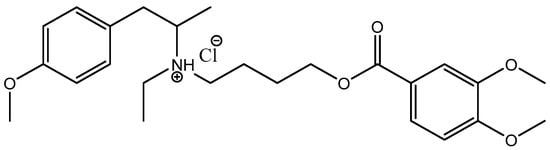 - Radwan, M.A.; Foda, N.H.; Al Deeb, O.A. Mebeverine Hydrochloride. In Analytical Profiles of Drug Substances and Excipients; Brittain, H.G., Ed.; Academic Press: San Diego, CA, USA, 1998; Volume 25, pp. 165–207. ISBN 978-0-12-260825-4. ISSN 1075-6280. [Google Scholar] [CrossRef]