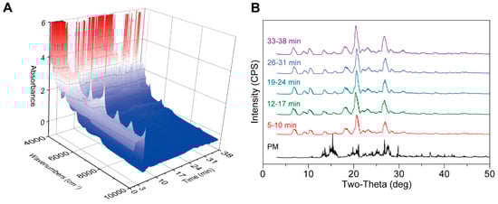 NIR can detect the generation of CC in-line during the PAT process. (A) NIR for in-line analysis (0-38 min). (B) PXRD for off-line analysis.