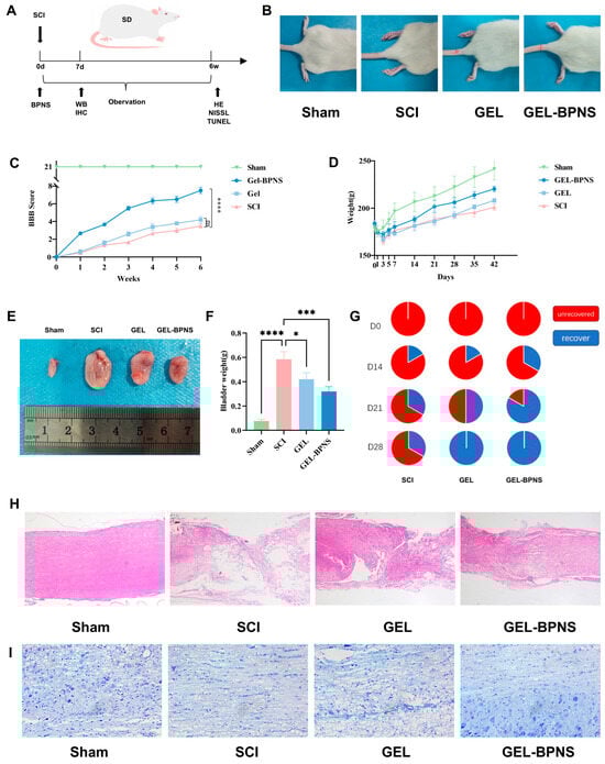 2.8. BBB Score, Bladder, and Hindlimb Posture
