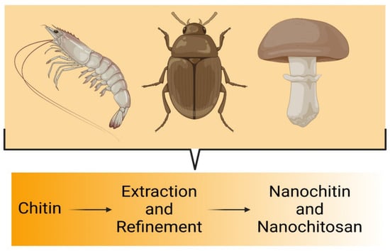 Chitin and chitosan have enhanced properties in the nanoscale [,,].