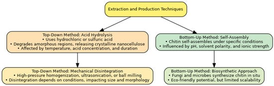 Figure 3 presents a comprehensive overview of the various methodologies employed in extracting and producing nanochitin.
