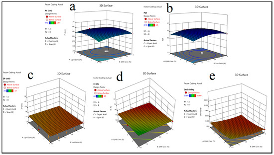 3.2.1. The Influence of Formulation Parameters on Particle Size (P.S)