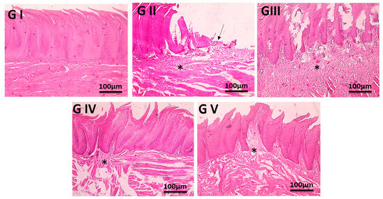 - Longo, B.; Sommerfeld, E.P.; da Silva, R.; Somensi, L.B.; Mariano, L.N.B.; Boeing, T.; de Andrade, S.F.; de Souza, P.; da Silva, L.M. Dual Role of Eugenol on Chronic Gastric Ulcer in Rats: Low-Dose Healing Efficacy and the Worsening Gastric Lesion in High Doses. Chem. Biol. Interact. 2021, 333, 109335. [Google Scholar] [CrossRef]