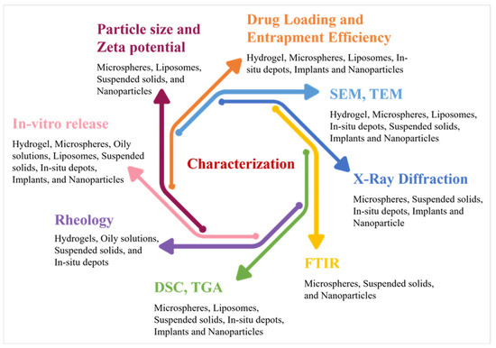 Characterization methodologies for various formulations (the template used for the image is generated using https://www.presentationgo.com/, accessed on 30 March 2025).