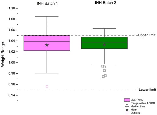 | INH batch 1 | 11.22 | ±0.51 | 6.62 | ±0.43 |