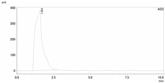 Radiochemical purity was determined using a high-performance liquid chromatography (HPLC) system LC-20A Shimadzu (Kyoto, Japan). The analytical column used was a Nova-Pak C18 (4 µm 3.9 mm × 150 mm) with the mobile phase consisting of PIC B8 0.005M/acetonitrile (4:6) at a flow rate of 1 mL/min. The UV (280 nm) and radioisotope (RI) detectors were obtained from Shimadzu and Universal Giken (US-3300), respectively. Radionuclide identity testing was carried out using a Multi-Channel Analyzer (MCA) DS-P1000 Spectrum Station SEIKO EG and G (Tokyo, Japan). Other tests, such as the formaldehyde test, sterility test, and endotoxin test, were conducted as follows. Formaldehyde was tested using a formaldehyde color reagent, PACK TEST Kyoritsu Chemical Lab., Corp.( Yokohama, Japan). The sterility test was performed by incubating [13N]NH3 in both a thioglycol liquid medium and an SCD liquid medium (Darmstadt, German) in an A3001 incubator Ikuta Sangyo, (Aichi, Japan). The endotoxin test was performed using a Toxinometer ET-7000 with Limulus ES-II plus CS single Test Wako299-77201 Fujifilm Wako Pure Chemical Corporation (Osaka, Japan).