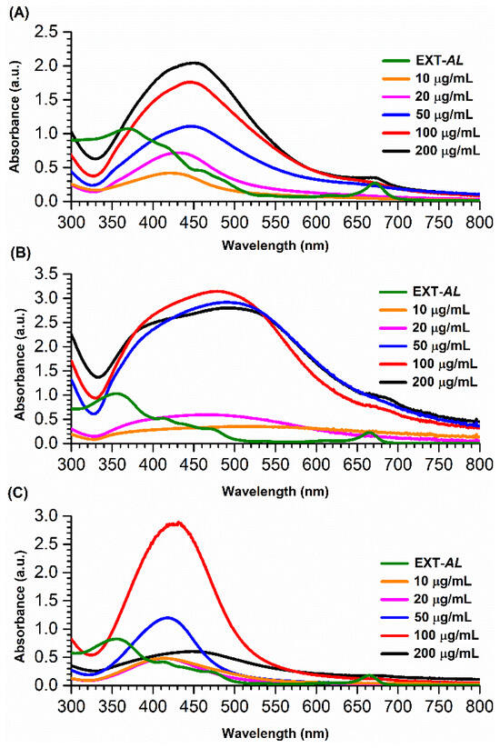 2.2. Synthesis of AgNPs with Antignon leptopus Ethanolic Extract (EXT-AL)