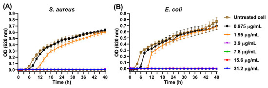 3.10. Inhibition of Bacterial Growth by AgNPs